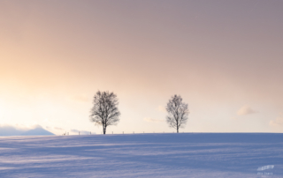 青い池は凍る。凍ってその上に雪が積もるから、冬は青い水面は見えない。 冬に美瑛に来ようとする方から、「雪景色の丘」や「青い池」を見たいと言われることがある。 「青い池は夜のライトアップしか楽しめないと思いますよ。昼間は真っ白ですから」と返すと、「えっ、何故ですか?」と、ほぼ全ての人がそういった反応だ。 「水ですからねぇ、毎日氷点下が続き、冷え込むときはマイナス20℃になりますからね。」と返す。 青い池の上流にある「白ひげの滝」は一部が凍っているものの、下を流れる美瑛川の青い水が見えて綺麗だ。そもそも、青い池は、十勝岳が噴火した際に美瑛川に沿って流れてくる泥流を食い止めるために築かれた堰堤に偶然に川の水が溜まったもの。堰堤は、泥流から農地や街を守るためのものだ。 冬の日中は短い。 年末年始あたりにシュカブラに1泊して、宿からの夕景が見たいと聞かれることがよくある。 「冬至の頃は日没が15:30頃で、チェックインできるのは16:00からですから、1泊ではシュカブラからの夕景は厳しいですねぇ。天気に恵まれれば、朝は少し遅めに起きても朝焼けが見られると思いますよ。日の出が7:30頃ですので。特に冬は、日中が短いので連泊がお勧めですよ。」と返す。 夏至の頃は、日の入りが19:00頃、日の出が4:00頃と、高緯度であるため季節による差が大きい。 東京や大阪は北緯35°ぐらい、美瑛が北緯43°ぐらい、地球は太陽の周りを公転していが、その公転面に対して、23.4°地軸の傾きがあるため、緯度が高くなればなるほど、季節による差が大きい、というか、その傾きが季節を作り出しているということである。 北緯66.6°以上の北極圏に行けば、その差が歴然となり、白夜や極夜という現象がみられる。そういうこと。 でも冬が大好きだ。真っ白な丘は最高に美しい。快晴の満月の夜に、月明かりで見る雪原も幻想的だ。 美瑛は「丘のまち」と呼ばれ、その景観が独特で有名だ。 明治時代に様々な事情により内地から渡ってきた人々が、この地で生きていくために森の木を伐り、伐根して農地へと変えていった。 冬、その広大な農地には雪が積もり真っ白な丘になるのである。森のままでは、そうはならない。夏のパッチワークのような模様もそうであるが、冬の雪原も農業という人の営みから生まれた風景である。 冬は野菜が採れない。 2月に美瑛に行って、北海道産の美味しい野菜が食べたいと聞かれることがある。 「ジャガイモと玉葱がメインですね」と返す。 ほうれん草など1月中旬までハウス栽培している一部の野菜はあるが、基本的には冬は野菜が採れない。寒さと雪で作物は育たない。 葉物やトマトは採れないが、ジャガイモが最高においしい。8月の新ジャガは、ホクホクしているが、夏や秋に収穫し冬の間に寝かされ熟成したジャガイモの甘さは格別だ。 ジャガイモと玉葱ときたら、人参と肉を足して、必然とメニュー決まる。 暗くなる17時頃から、宿でのんびりとスローペースで料理するのも悪くない。 美瑛はリゾート地ではない。農業を基幹産業とする町である。 人々が日常を送る町。 この地の風土を感じながら、暮らすように泊まってほしい。